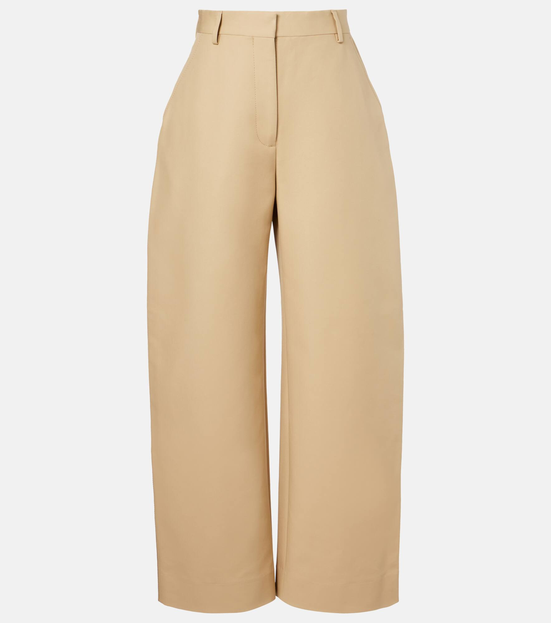 Stockholm-based Acne Studios has a firmly established cult following thanks to its Scandinavian-cool aesthetic. Crafted from smooth cotton satin, these pants are tailored into a wide-leg silhouette with a leather logo patch at the back. Product Details - Material: 100% cotton - Care instructions: machine wash at 30 degrees - Made in Romania - Designer color name: Beige - Item color: beige - Closure: zipper fly, button and hook fastenings - Pockets: slant pocket, back pocket - Belt loops - Item number: P01088987 Size & Fit - Fits large to size - we recommend trying one size smaller - Non-stretchy fabric - Wide-leg - High-waisted - The model seen in the picture is 178cm-5'10" and wearing a size DE 32