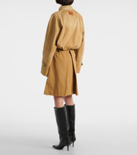 Product Details - Material: 100% cotton - Care instructions: machine wash at 30 degrees - Made in Romania - Designer color name: Faded Ochre - Lining: 100% cotton - Trim: 100% cow leather - Closure: zipper, hook fastening - Pockets: side slit pockets - Item number: P01007233 Size & Fit - True to size - Non-stretchy fabric - The model seen in the picture is 178cm-5'10" and wearing a size DT 34