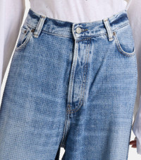 Stockholm-based Acne Studios has earned a firmly established cult following through its cool Scandinavian aesthetic. A style to wear again and again, these jeans feature relaxed wide legs, a high-rise waist, and shimmering crystals all over. Product Details - Material: 43% cotton (recycled), 43% viscose, 14% polyester (recycled) - Care instructions: dry clean - Made in Italy - Designer color name: Light Blue - Item color: blue - Details: 100% cow leather - Contains non-textile parts of animal origin - Hardware color: silver - Belt loops - Pockets: five pockets - Closure: button fastening - Item number: P01114283 Size & Fit - True to size - Non-stretchy fabric - Wide-leg - Low-rise - The model seen in the picture is 178cm-5'10" and wearing a size XS