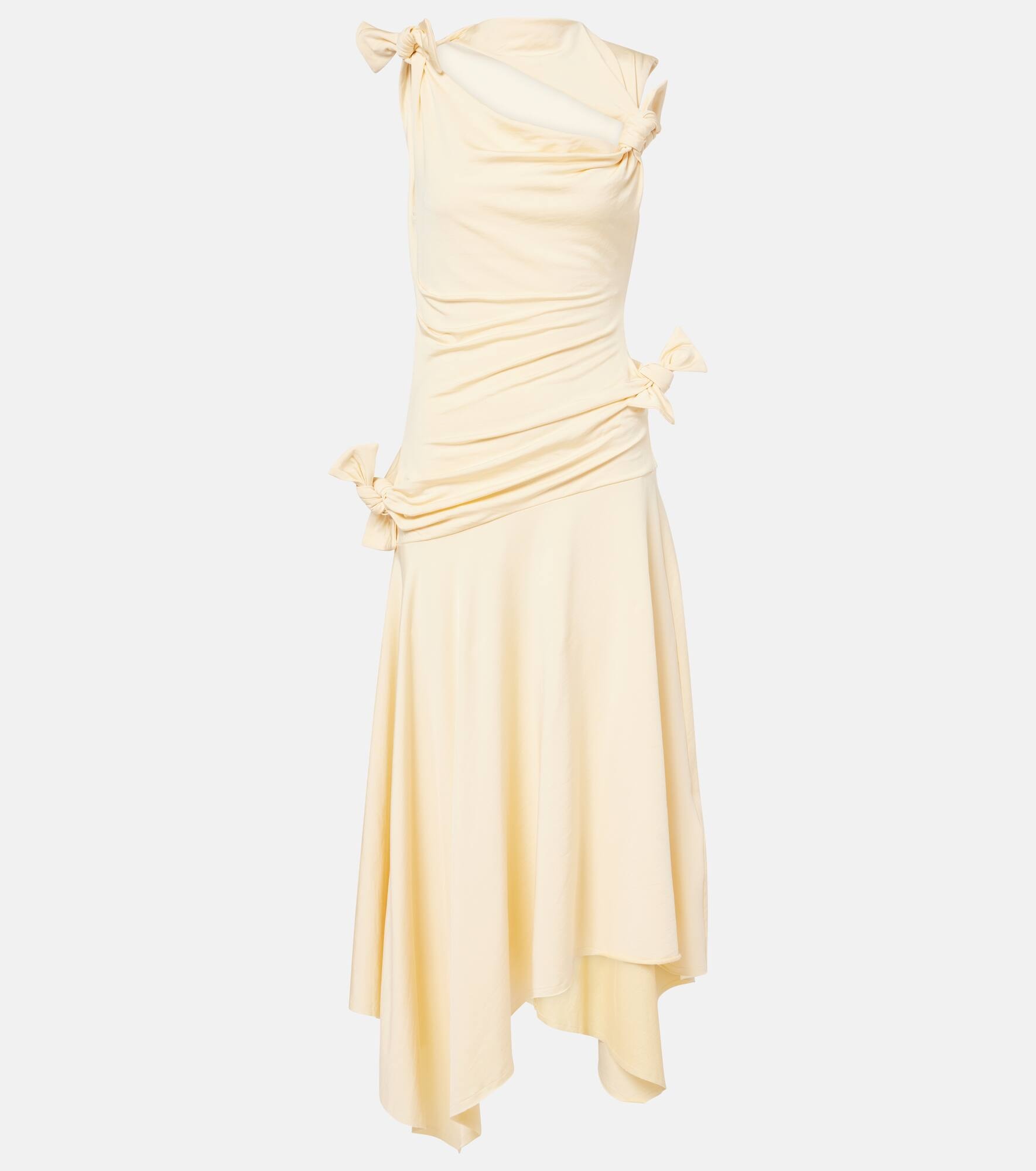 Bring intrigue to your wardrobe with a midi dress from Acne Studios. Crafted from comfortable jersey, it ensures all eyes stay on you with knot details, an asymmetric hem, and a striking cutout. Product Details - Material: 60% viscose, 32% cotton, 8% elastane - Care instructions: dry clean - Made in Portugal - Designer color name: Soft Yellow - Lining: 74% nylon, 26% elastane - Item number: P01024740 Size & Fit - True to size - Fitted bodice, loose skirt - Stretchy fabric - The model seen in the picture is 178cm-5'10" and wearing a size XS
