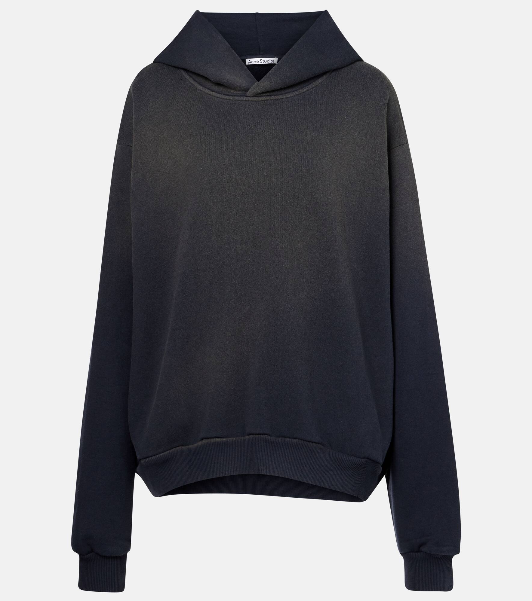 Stockholm-based Acne Studios has a firmly established cult following thanks to its Scandinavian-cool aesthetic. This hoodie is crafted from a cotton-blend jersey with a logo-printed front and boasts distressed detailing. Product Details - Material: 89% cotton, 11% polyester - Care instructions: machine wash cold - Made in Portugal - Designer color name: Faded Black - Item color: black - Item number: P01073575 Size & Fit - True to size - Dropped shoulders - Designed for a loose fit - Slightly stretchy fabric - Falls below the hip - The model seen in the picture is 178cm-5'10" and wearing a size XS