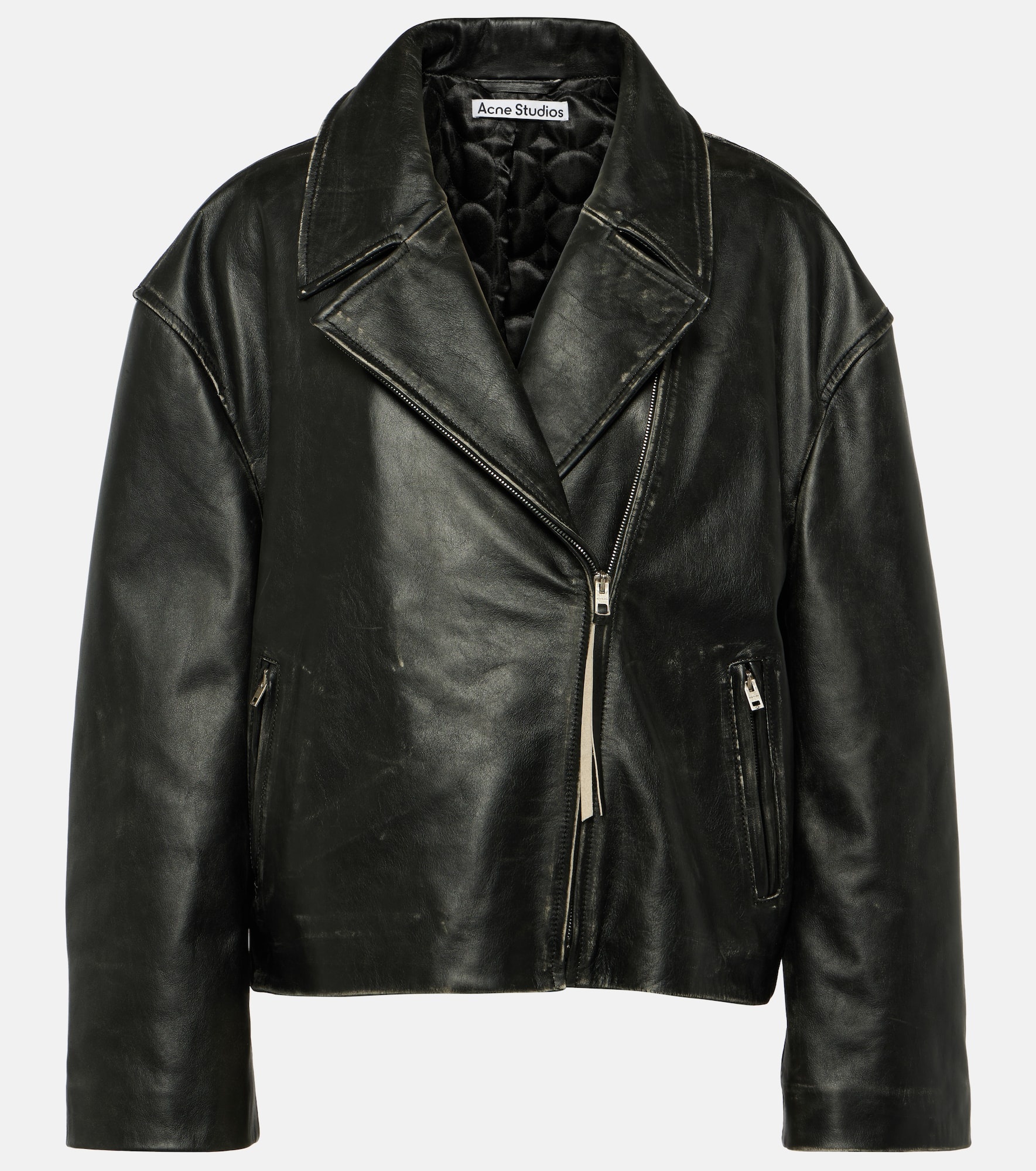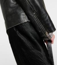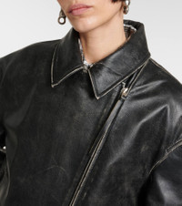 Distressed leather biker jacket