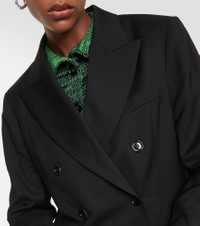 Stockholm-based Acne Studios has a firmly established cult following thanks to its Scandinavian-cool aesthetic. Expanding its tailoring collection, this double-breasted blazer is structured with shoulder pads. Product Details - Lining: 100% viscose - Closure: double-breasted buttoned front - Care instructions: dry clean - Designer color name: Black - Pockets: flap pockets - Made in Bulgaria - Sleeve lining: 46% acetate, 54% cotton - Material: 26% wool, 74% viscose - Item number: P00843902 Size & Fit - True to size - Shoulder pad inserts - Designed for a loose fit - Mid-weight material - Falls below the hip - The model seen in the picture is 178cm-5'10" and wearing a size DT 34