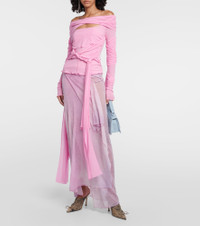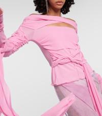 Swathes of pink fabric create a wrap-around, draped construction in this top from Acne Studios. Reaching a crescendo at its loose knot, the bandage-effect style will make an artful addition to your edit. Product Details - Material: 100% viscose - Care instructions: dry clean - Made in Italy - Designer color name: Pink - Lining: 57% nylon, 43% elastane - Item number: P00843928 Size & Fit - True to size - Off-the-shoulder - Fitted - Mid-weight material - Falls to the hip - The model seen in the picture is 178cm-5'10" and wearing a size XS