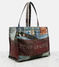 This tote bag embodies Acne Studios' unique approach to style. Crafted from canvas, the piece boasts a denim-effect print complemented by intricate detailing and is finished with two top handles and an embossed logo at the front. Product Details - Material: cotton - Lining: fabric - Made in Italy - Designer color name: Blue/Black - Item color: multicolor - Internal details: internal slot pocket, internal zipped pocket - Closure: lobster-clasp fastening - Top handles - Item number: P01046997 Size & Fit - Height 34cm-13.5" - Width 46cm-18" - Depth 17cm-6.5" - Length of handles 64cm-25"