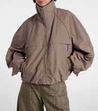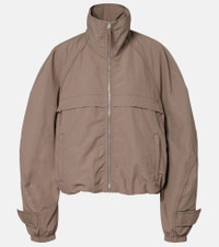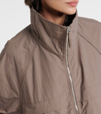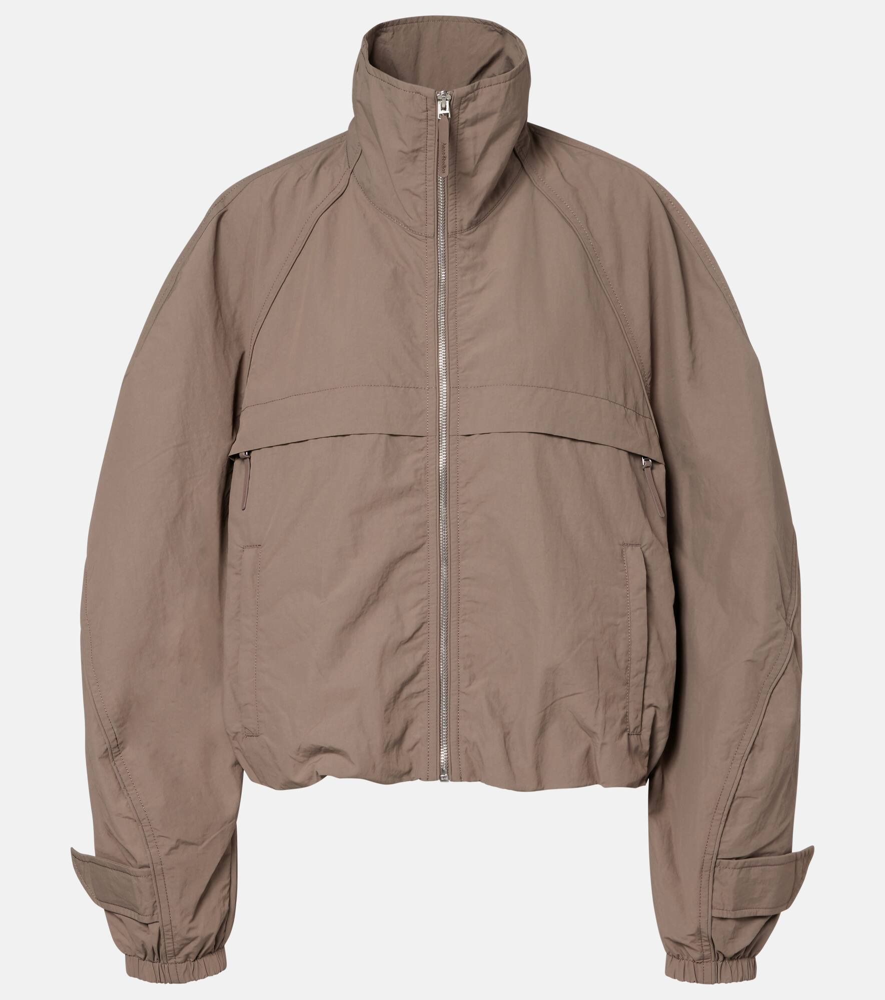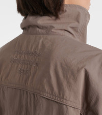 This Acne Studios jacket serves as both reliable weather protection and a stylish addition to your outerwear collection. Its design features a high neck and a drawstring hem, and the back is finished with a logo embroidery. Product Details - Material: 100% nylon - Care instructions: dry clean - Made in China - Designer color name: Mud Grey - Item color: beige - Lining: 100% polyester - Closure: zipped front - Pockets: zipped pockets - Cuff: elasticated - Hem: drawstring at the hem for an adjustable fit - Item number: P01088656 Size & Fit - True to size - Adjustable hem - Oversized - Non-stretchy fabric - Falls to the hip - The model seen in the picture is 178cm-5'10" and wearing a size DE 34