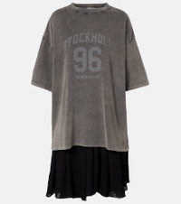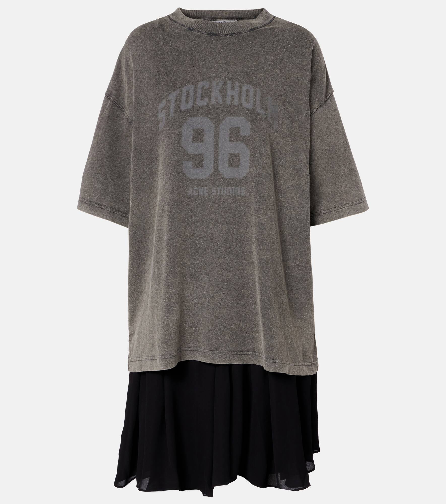 The Ennie cotton minidress by Acne Studios features a layered design with a T-shirt and a skirt that create an oversized look. This piece showcases the brand's logo at the front, bringing effortless style. Product Details - Material: 100% cotton - Care instructions: machine wash at 30 degrees - Made in Portugal - Designer color name: Anthracite/Black - Item color: gray, black - Material II: 100% polyester - Two-piece set - Collar: crewneck - Sleeves: dropped shoulder - Closure: zipped side - Item number: P01088672 Size & Fit - True to size - Dropped shoulders - Designed for a loose fit - Partly stretchy fabric - The model seen in the picture is 178cm-5'10" and wearing a size XS