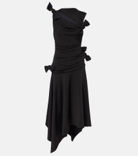 Asymmetric knotted cutout stretch-crepe midi dress