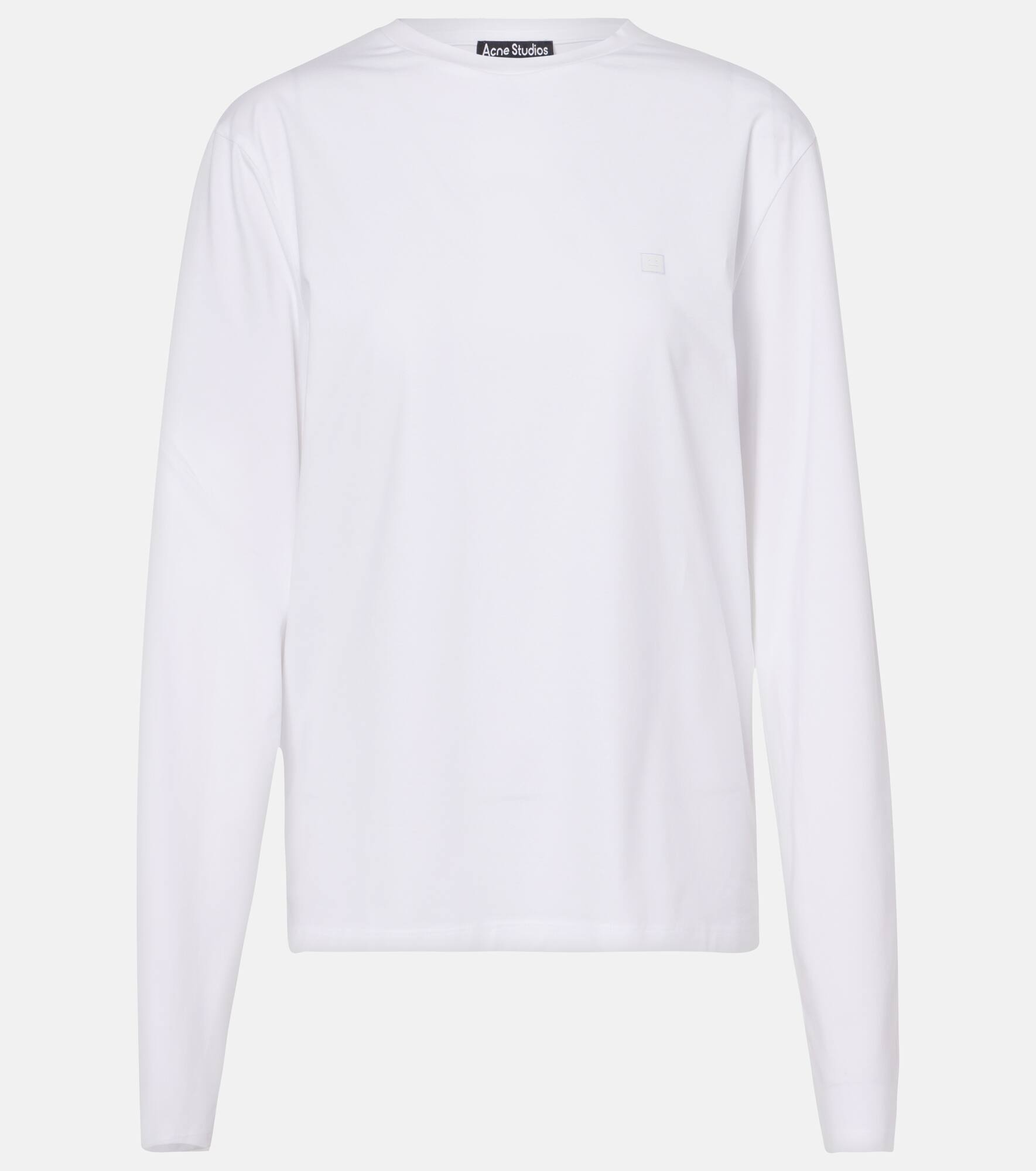 Designed by Jonny Johansson for Acne Studios, the Face patch has the Swedish “Lagom” expression of being neither happy nor sad. It appears on this cotton-blend jersey top as a subtle embroidered logo detail. Product Details - Material: 90% cotton, 10% elastane - Care instructions: machine wash at 30 degrees - Made in Portugal - Designer color name: Optic White - Item number: P01007198 Size & Fit - True to size - Designed for a loose fit - Stretchy fabric - Falls below the hip - The model seen in the picture is 178cm-5'10" and wearing a size XS