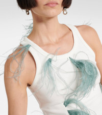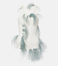 Product Details - Material: 96% cotton, 4% elastane - Care instructions: dry clean - Made in Portugal - Designer color name: White/Navy - Trim: 100% ostrich feathers - Contains non-textile parts of animal origin - Item number: P00921868 Size & Fit - True to size - Fitted - Stretchy fabric - Falls to the hip - The model seen in the picture is 178cm-5'10" and wearing a size XS - Length of fringe 15cm-6"