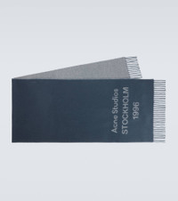 Stockholm-based Acne Studios has earned a firmly established cult following through its cool Scandinavian aesthetic. This fringed scarf is crafted from wool and is finished with logo detailing. Product Details - Material: 100% wool - Care instructions: dry clean - Made in Italy - Designer color name: Faded Indigo - Item color: blue - Item number: P01123455 Size & Fit - Length 200cm-78.5" - Width 43cm-17"