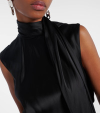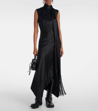 Fringed scarf-detail satin midi dress