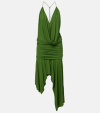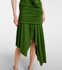 Gathered asymmetric jersey midi dress