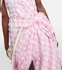 Acne Studios’ playful approach to proportion is exemplary on this gingham-print dress. Designed for a relaxed fit, it features a bow embellishment at the front, an adjustable neck strap, and an asymmetric, draped hem. Product Details - Made in Italy - Material: 50% viscose, 50% polyester - Care instructions: dry clean - Designer color name: Pink - Item number: P00778376 Size & Fit - True to size - Low back - Cinched waist - Lightweight material - The model seen in the picture is 178cm-5'10" and wearing a size DT 34