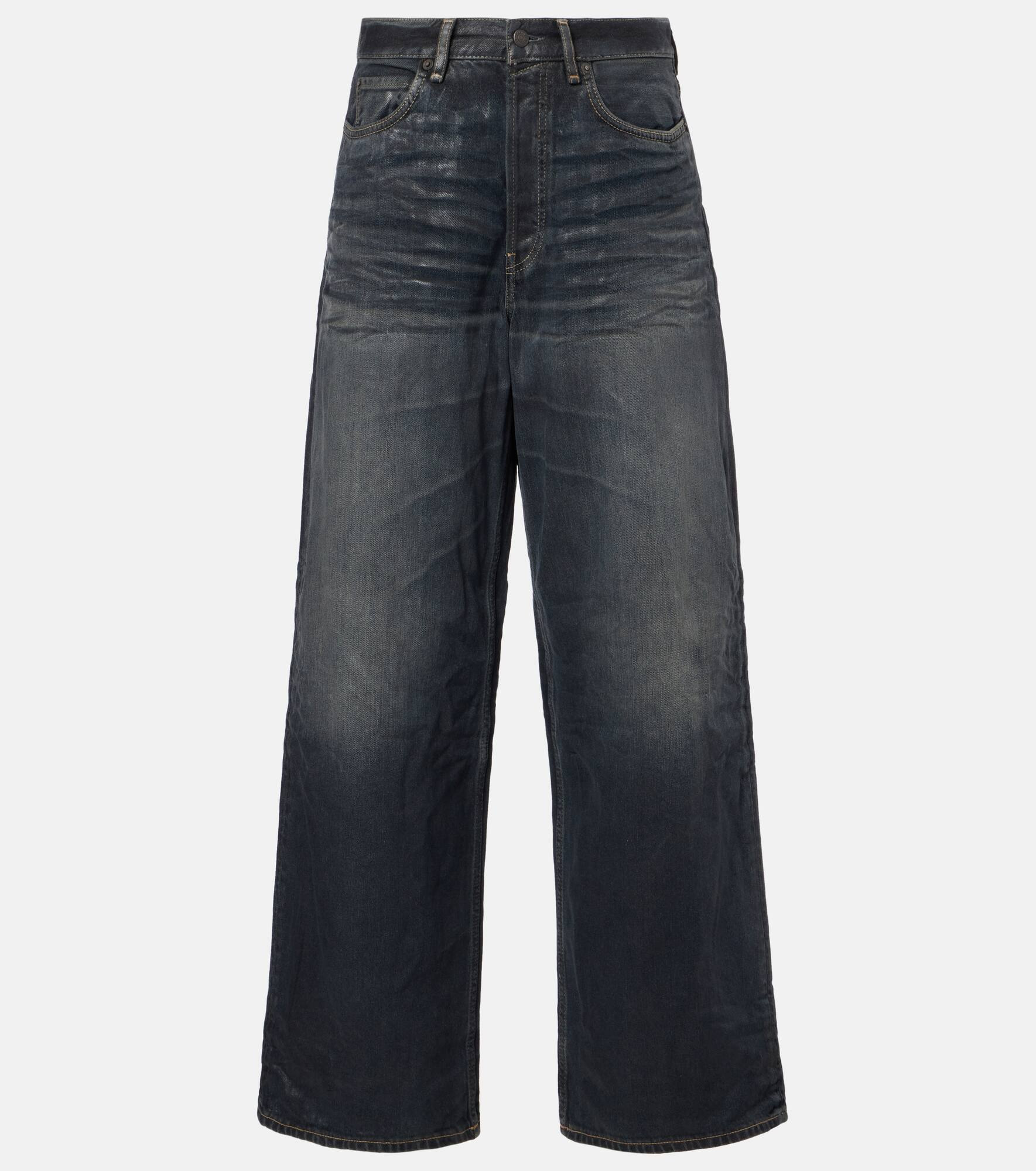 Stockholm-based Acne Studios has a firmly established cult following thanks to its Scandinavian-cool aesthetic. The Glossy wide-leg jeans come with a mid-rise waistline and a creased finish for a vintage worn look. Product Details - Material: 100% cotton - Care instructions: machine wash at 30 degrees - Made in Italy - Designer color name: Black - Item color: black - Details: 100% cow leather - Closure: concealed button placket - Pockets: five pockets - Belt loops - Item number: P01088963 Size & Fit - True to size - Non-stretchy fabric - Wide-leg - Mid-rise - The model seen in the picture is 178cm-5'10" and wearing a size XS