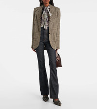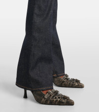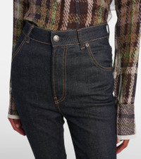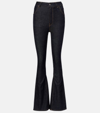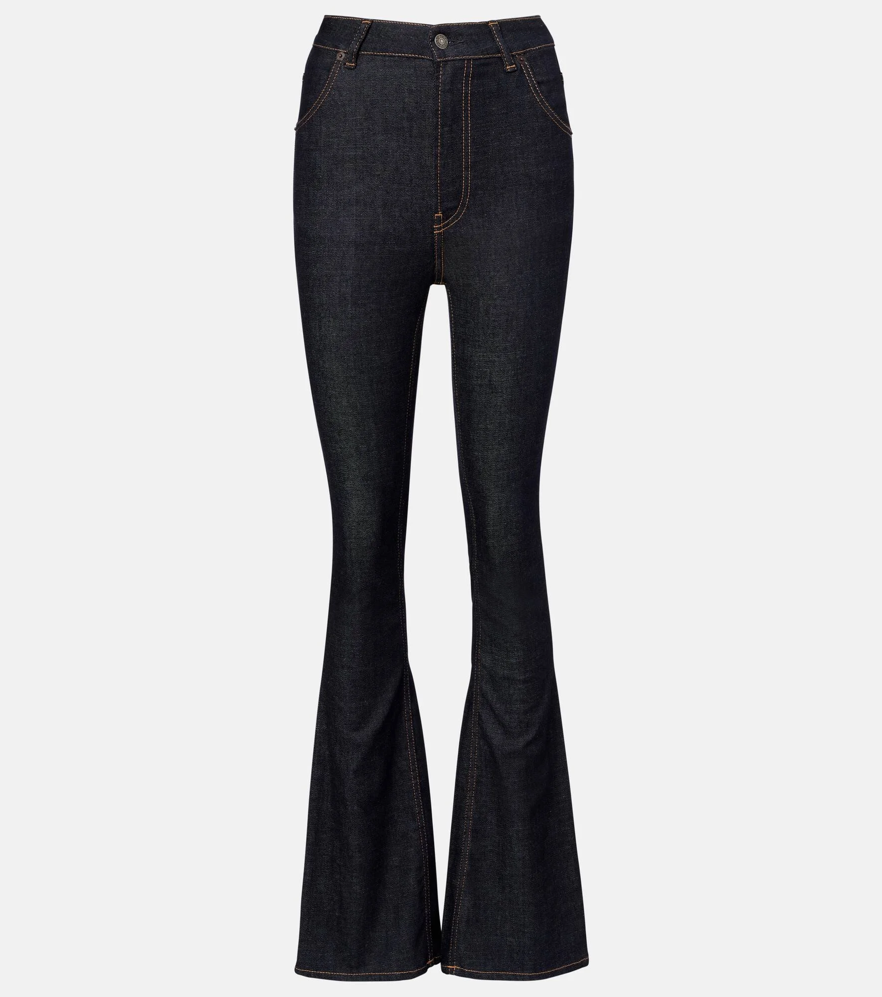 These denim-style pants from Acne Studios are made from a stretchy cotton-blend, defined by an extended high-rise silhouette. The design is cut to a slim fit and opens at the knees to a flattering flare. Product Details - Material: 62% cotton, 21% viscose, 15% polyester, 2% elastane - Care instructions: machine wash at 30 degrees - Made in Italy - Designer color name: Dark Blue - Item color: blue - Pockets: slant pockets, back pockets - Belt loops - Closure: zipper fly, button fastening - Item number: P01076438 Size & Fit - True to size - Slightly stretchy fabric - Slim-leg with a flared hem - High-rise - The model seen in the picture is 178cm-5'10" and wearing a size DE 34