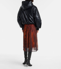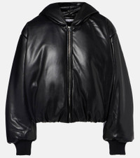 This jacket from Acne Studios captures the brand's signature Scandinavian-cool aesthetic. Designed with a leather-effect finish, this style features a hood, snap pockets, zip closure, ribbed cuffs, and an elasticated waist for added comfort. Product Details - Material: 100% polyester - Care instructions: spot clean - Made in China - Designer color name: Black - Item color: black - Coating: 100% polyurethane - Lining: 100% viscose - Filling: 100% polyester - Closure: zipped front - Pockets: snap-buttoned pockets, internal pocket - Hood - Cuff: ribbed - Hem: elasticated - Item number: P01088653 Size & Fit - True to size - Dropped shoulders - Designed for a loose fit - Elasticated hem - Non-stretchy fabric - Slightly cropped - The model seen in the picture is 178cm-5'10" and wearing a size DE 34