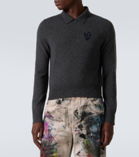 This Acne Studios polo sweater is a warm, stylish choice for casualwear, showcasing a signature touch with the jacquard Acne Studios heart. The piece is crafted from soft wool and yak and features a classic collar. Product Details - Material: 51% wool, 49% yak wool - Care instructions: hand wash - Made in China - Designer color name: Dark Grey Melange - Item color: gray - Collar: polo collar - Cuff: ribbed - Hem: ribbed - Item number: P01066545 Size & Fit - True to size - For a looser fit, we recommend taking one size up - Slim fit - Stretchy fabric - Slightly cropped - Height of model is 189cm-74.5" and wears a size L