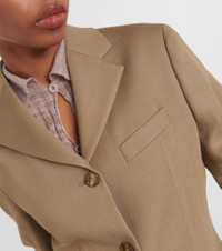Product Details - Material: 69% wool, 31% viscose - Care instructions: dry clean - Made in Portugal - Designer color name: Mud Beige - Lining: 100% viscose - Closure: single-breasted (three buttons) - Pockets: flap pockets, utility chest pocket - Item number: P00897514 Size & Fit - Fits large to size - we recommend trying one size smaller - Cinched waist - Mid-weight material - Falls below the hip - The model seen in the picture is 178cm-5'10" and wearing a size DT 32