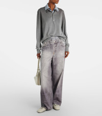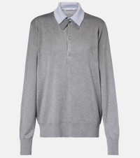 Crafted from silk, wool, and cashmere, the Koyalt sweater by Acne Studios is designed with a layered construction for a striking look. The piece features a back logo patch and an attached collar that creates a shirt-like effect. Product Details - Material: 70% silk, 20% wool, 10% cashmere - Care instructions: hand wash - Made in China - Designer color name: Sky Blue/Light Grey Melange - Item color: gray, blue - Contains non-textile parts of animal origin - Collar: polo collar - Closure: buttoned placket - Cuff: ribbed - Hem: ribbed - Item number: P01088682 Size & Fit - True to size - For a closer fit, we recommend taking one size down - Dropped shoulders - Designed for a loose fit - Stretchy fabric - Falls below the hip - The model seen in the picture is 178cm-5'10" and wearing a size XS
