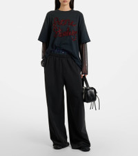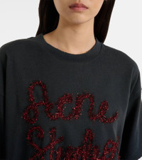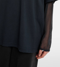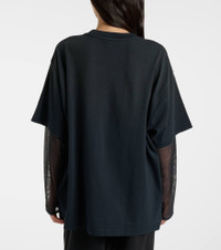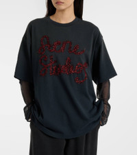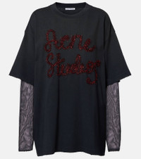 Stockholm-based Acne Studios has earned a firmly established cult following through its cool Scandinavian aesthetic. Featuring a layered construction, this T-shirt has mesh sleeves and a cotton jersey top with tactile logo embroidery. Product Details - Material: 100% cotton (organic) - Care instructions: machine wash at 30 degrees - Made in Portugal - Designer color name: Anthracite Grey - Item color: gray, red - Material II: 100% nylon - Embroidery: 65% nylon, 35% polyester - Collar: crewneck - Sleeves: dropped shoulder - Item number: P01114275 Size & Fit - True to size - Dropped shoulders - Oversized - Slightly stretchy fabric - Falls below the hip - The model seen in the picture is 178cm-5'10" and wearing a size XS
