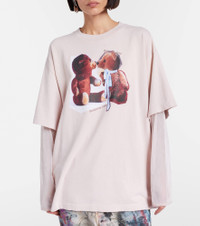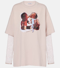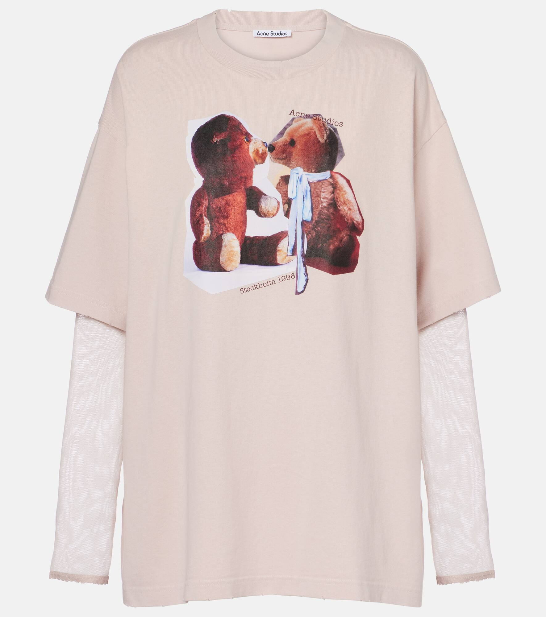 Stockholm-based Acne Studios has a firmly established cult following thanks to its Scandinavian-cool aesthetic. This cotton T-shirt has a long-sleeved layer underneath. The design is finished with a printed artwork in the front. Product Details - Material: 100% cotton - Care instructions: machine wash at 30 degrees - Made in Portugal - Designer color name: Violet Pink - Item color: pink - Material II: 100% nylon - Collar: crewneck - Item number: P01088756 Size & Fit - True to size - Dropped shoulders - Designed for a loose fit - Slightly stretchy fabric - Falls below the hip - The model seen in the picture is 178cm-5'10" and wearing a size XS