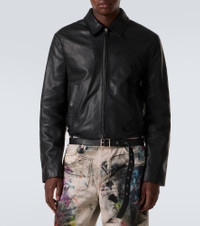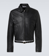 Stockholm-based Acne Studios has a firmly established cult following thanks to its Scandinavian-cool aesthetic. Made from leather, this slightly cropped jacket features buttoned cuffs and multiple pockets for everyday convenience. Product Details - Material: 100% lamb leather - Care instructions: specialist clean - Made in Turkey - Designer color name: Black - Item color: black - Lining: 100% polyester - Pockets: snap-buttoned pockets, internal pockets - Cuff: buttoned - Closure: zipped front - Detachable belt - Item number: P01066497 Size & Fit - Fits small to size - we recommend trying one size larger - Straight fit - Non-stretchy fabric - Slightly cropped - Height of model is 188cm-74" and wears a size IT 52