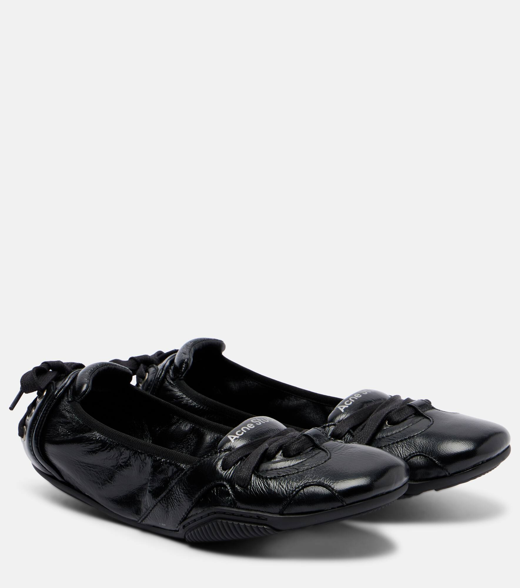 Stockholm-based Acne Studios has a firmly established cult following thanks to its Scandinavian-cool aesthetic. Made in Italy from leather, these flats are a ballet-inspired pair with lace-up fastenings and decorative laces up the heel counters. Product Details - Upper: lamb leather - Lining: leather - Sole: leather insole, rubber sole - Toe shape: round toe - Made in Italy - Includes: shoe box, dust bag - Designer color name: Black - Item color: black - Item number: P01128754 Size & Fit - True to size - Half sizes please take the next size up - European sizes
