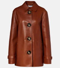 Crafted from leather, this jacket from Acne Studios embodies the brand’s signature Scandinavian cool. The straight fit design features a classic collar, welt pockets, and cuffs detailed with straps, buckles, and loops, finished with a buttoned front. Product Details - Material: 100% lamb leather - Care instructions: specialist clean - Made in Turkey - Designer color name: Cognac Brown - Item color: brown - Collar: classic (Straight point) - Closure: buttoned front - Pockets: welt pockets - Cuff: strap, buckle and loops - Unlined - Item number: P01088642 Size & Fit - True to size - Straight fit - Non-stretchy fabric - Falls below the hip - The model seen in the picture is 178cm-5'10" and wearing a size DE 36