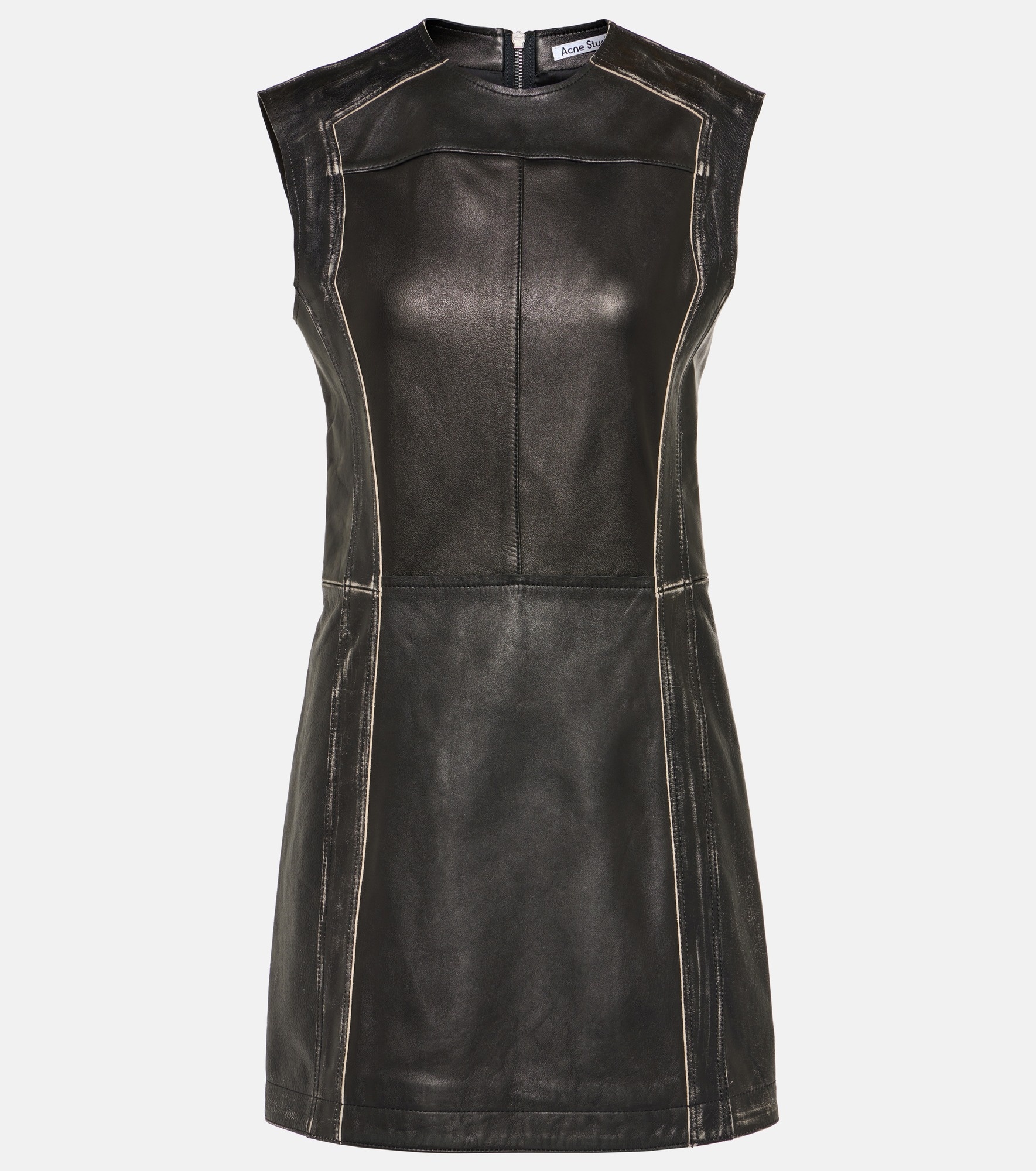 Stockholm-based Acne Studios has a firmly established cult following thanks to its Scandinavian-cool aesthetic. This minidress is cut to a sleeveless silhouette with leather patchwork and subtle contrast detailing. Product Details - Material: 100% leather - Care instructions: do not wash - Made in Turkey - Designer color name: Black - Lining: 100% viscose - Closure: zipped back - Contains non-textile parts of animal origin - Item number: P00849788 Size & Fit - Fits small to size - we recommend trying one size larger - Cinched waist - Mid-weight material - The model seen in the picture is 178cm-5'10" and wearing a size DT 36