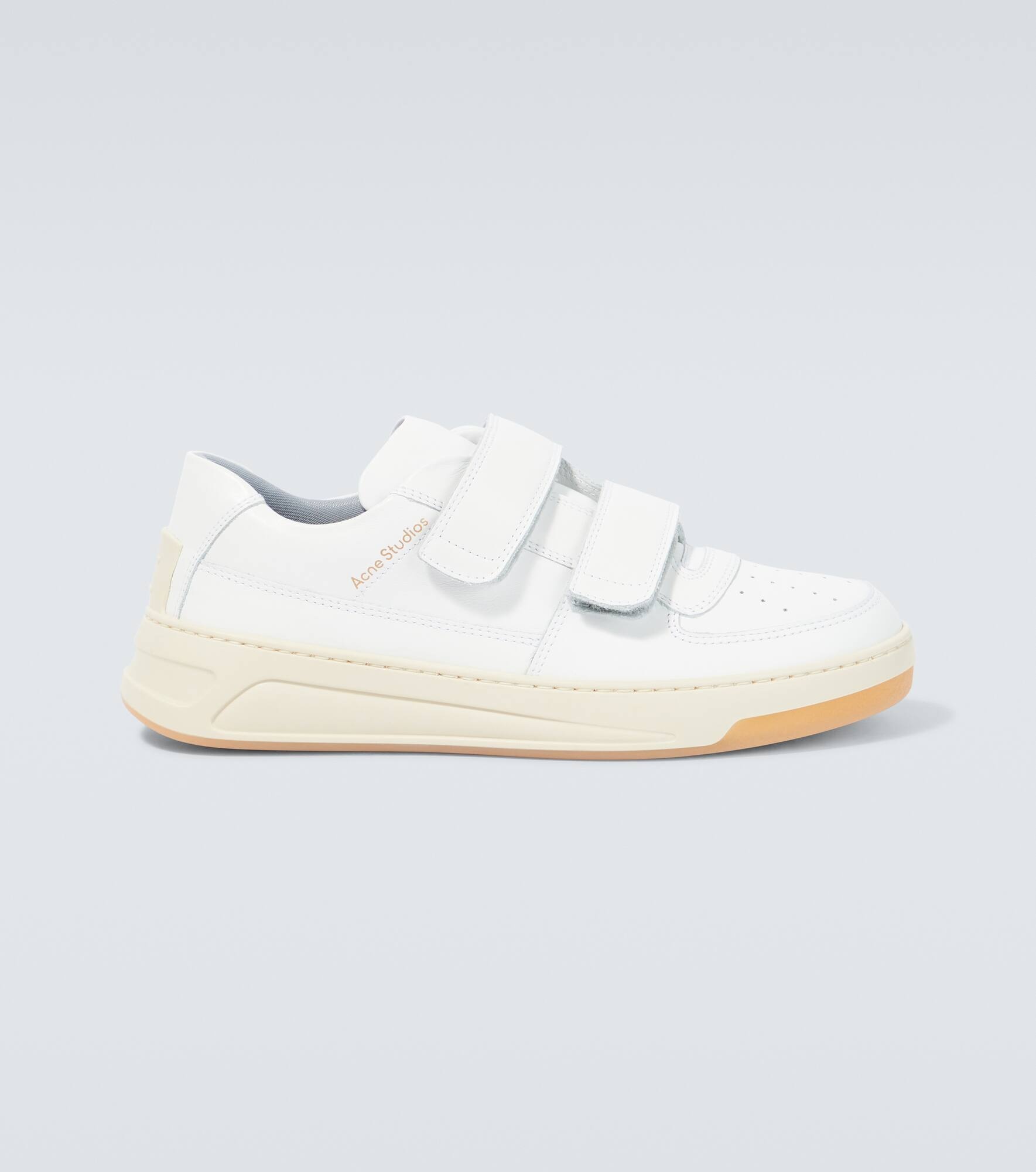 Minimalist and versatile, these sneakers from Acne Studios are made from calf leather and fasten via wide VELCRO® straps. They're detailed with subtle logo lettering and the house's iconic Face motif at the heel. Product Details - Upper: cow leather - Toe shape: round toe - Sole: fabric insole, rubber sole - Closure: VELCRO® fastening - Comes with a box - Designer color name: White - Lining: fabric - Made in Italy - Comes with dust bags - Item number: P00711497 Size & Fit - True to size - Half sizes please take the next size down - European sizes