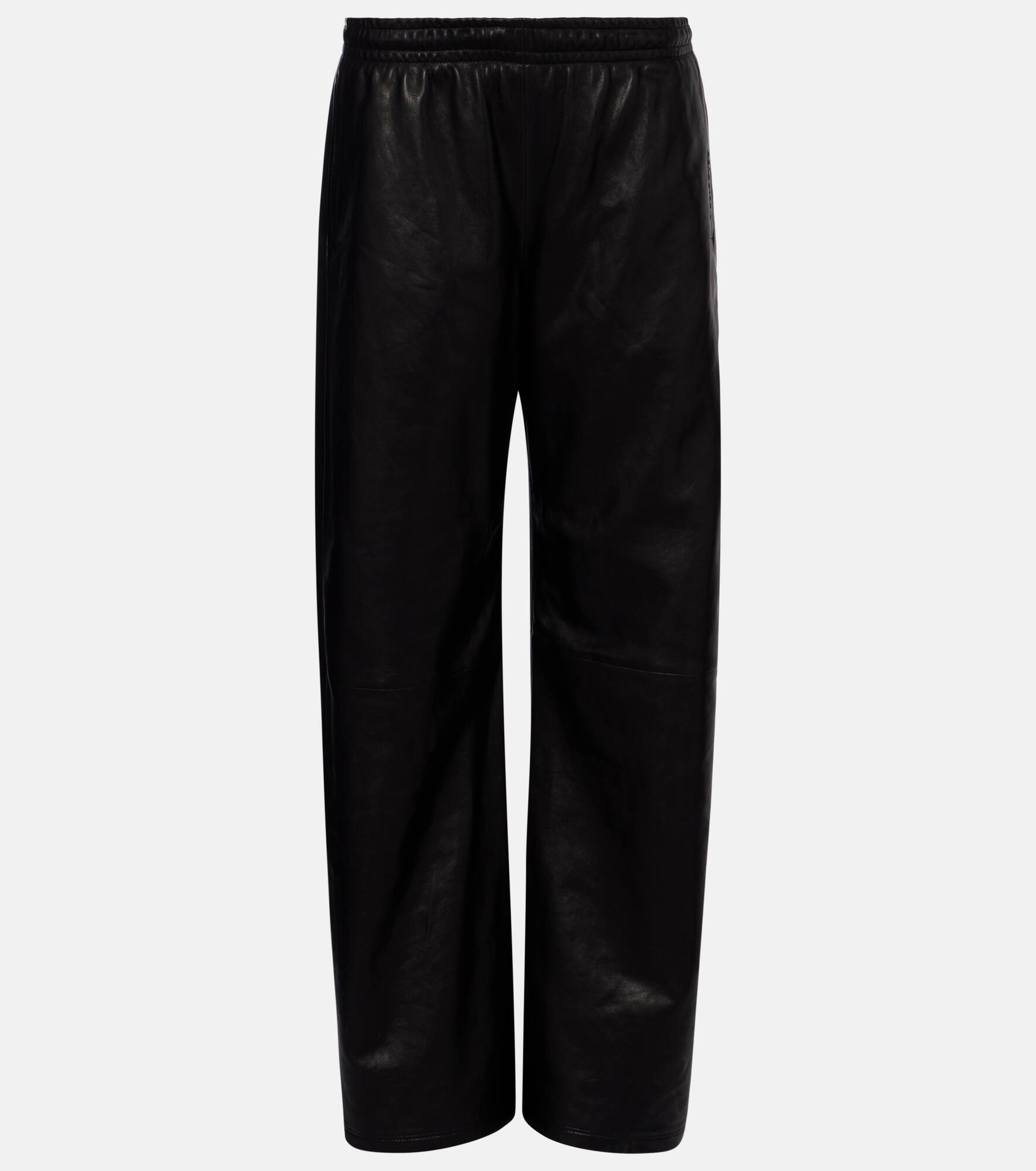 Stockholm-based Acne Studios has a firmly established cult following thanks to its Scandinavian-cool aesthetic. These wide-leg pants are made with leather and feature an elasticated drawstring waist and side slit pockets. Product Details - Material: 100% lamb leather - Care instructions: spot clean - Made in Turkey - Designer color name: Black - Item color: black - Lining: 50% acetate, 50% viscose - Elasticated drawstring waist - Pockets: side slit pockets - Item number: P01088758 Size & Fit - True to size - Elasticated waist - Adjustable at the waist - Non-stretchy fabric - Wide-leg - The model seen in the picture is 178cm-5'10" and wearing a size DE 34