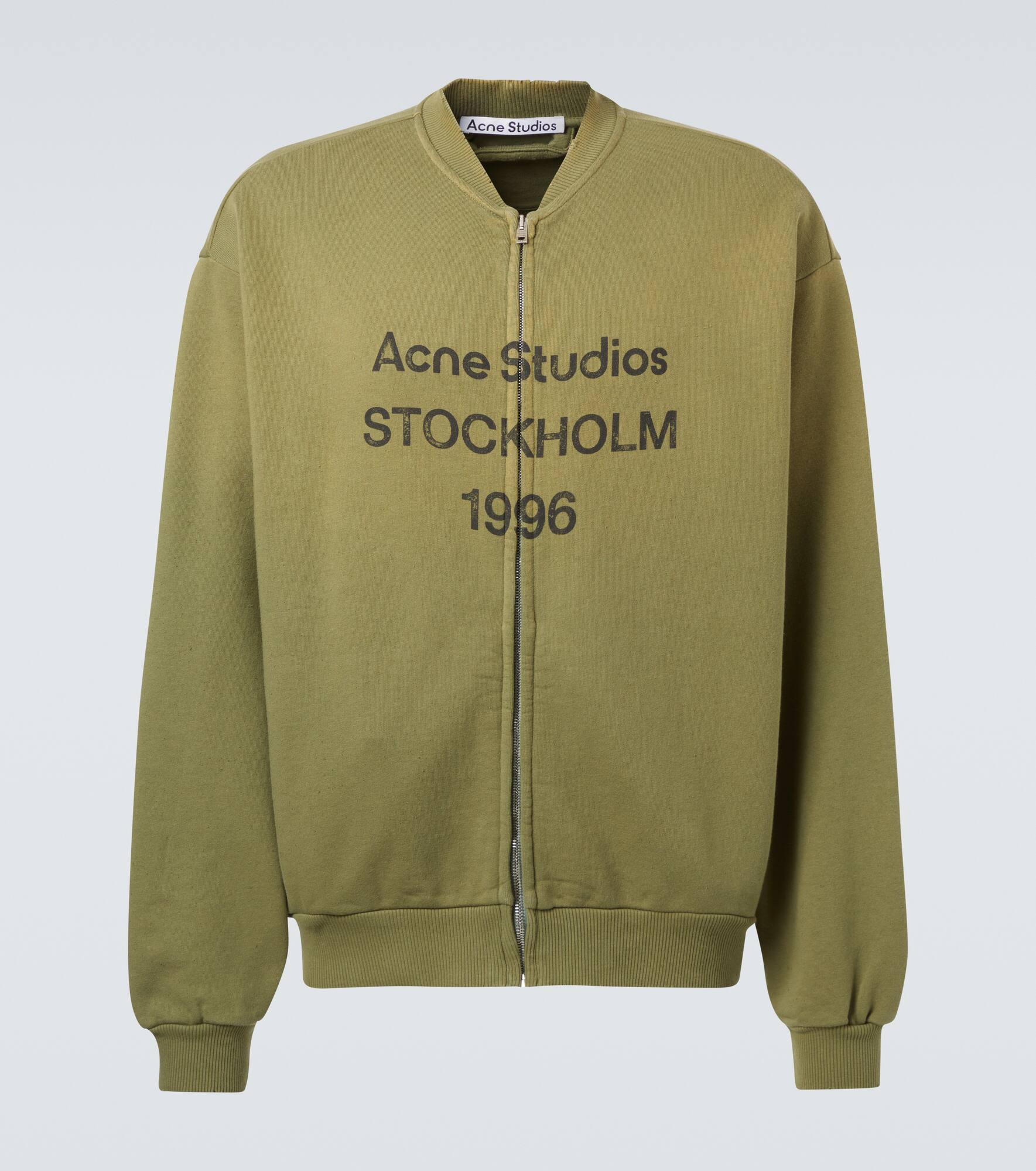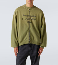 This zip-up sweatshirt from Acne Studios is crafted from a cotton-blend fleece with a signature dyed finish and the brand's logo at the front. This bold piece is finished with ribbed neckline, cuffs, and hem. Product Details - Material: 89% cotton, 11% polyester - Care instructions: machine wash at 30 degrees - Made in Portugal - Designer color name: Olive Green - Item color: green - Closure: zipped front - Pockets: side slit pockets - Hem: elasticated - Item number: P01066543 Size & Fit - True to size - Dropped shoulders - Designed for a loose fit - Elasticated hem - Non-stretchy fabric - Falls to the hip - Height of model is 188cm-74" and wears a size L