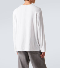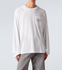 Stockholm-based Acne Studios has a firmly established cult following thanks to its Scandinavian-cool aesthetic. Primed for effortless layering, this long-sleeved T-shirt is made from a cotton blend and is complete with a logo print on the patch pocket. Product Details - Material: 85% cotton (organic), 15% hemp - Care instructions: machine wash at 30 degrees - Made in Portugal - Designer color name: Optic White - Item color: white - Collar: crewneck - Distressed details - Item number: P01123449 Size & Fit - True to size - Dropped shoulders - Oversized - Slightly stretchy fabric - Falls below the hip - Height of model is 189cm-74.5" and wears a size L