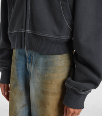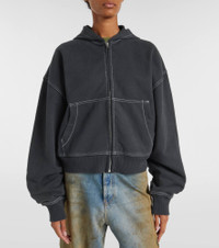 This zip-up sweatshirt from Acne Studios is crafted from soft cotton fleece and detailed with signature logo embroidery on the back. The design features a kangaroo pocket, contrast stitching, and ribbed trims. Product Details - Material: 100% cotton - Care instructions: machine wash at 30 degrees - Made in Portugal - Designer color name: Faded Black - Item color: black - Closure: zipped front - Hood - Cuff: ribbed - Sleeves: raglan - Pockets: slant pockets - Hem: ribbed - Item number: P01088926 Size & Fit - True to size - For a closer fit, we recommend taking one size down - Shoulder pad inserts - Dropped shoulders - Elasticated hem - Oversized - Non-stretchy fabric - Falls to the hip - The model seen in the picture is 178cm-5'10" and wearing a size XS