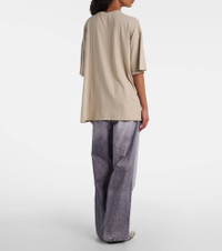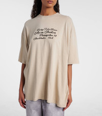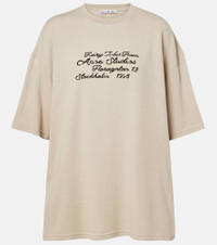 This short-sleeve T-shirt from Acne Studios is crafted from cotton jersey. Cut to a relaxed fit, the design features a crew neckline and is complete with the brand's fairytale logo print on the chest. Product Details - Material: 100% cotton - Care instructions: machine wash at 30 degrees - Made in Portugal - Designer color name: Oat Beige - Item color: beige - Collar: crewneck - Sleeves: dropped shoulder - Item number: P01088948 Size & Fit - True to size - For a closer fit, we recommend taking one size down - Dropped shoulders - Oversized - Stretchy fabric - Falls below the hip - The model seen in the picture is 178cm-5'10" and wearing a size XS