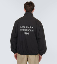 For a stylish and functional finish, turn to this black jacket from Acne Studios. Made from lightweight cotton poplin, the style has a logo print at the back and elasticated cuffs and hem. Product Details - Material: 100% cotton - Care instructions: machine wash at 30 degrees - Made in Portugal - Designer color name: Black - Lining: 85% polyester, 15% elastane - Closure: two-way zipped fastening - Pockets: side slit pockets - Elasticated cuffs - Elasticated waistband - Item number: P00831188 Size & Fit - True to size - Dropped shoulders - Elasticated hem - Oversized - Lightweight material - Falls to the hip - The model in the picture is 185cm-6'1" and wearing a size EU 48