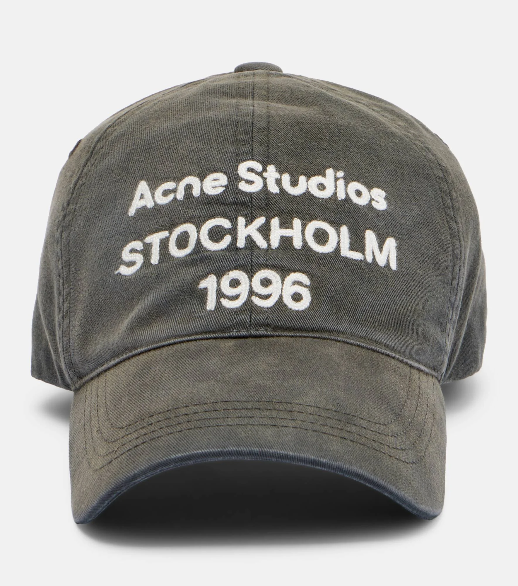 Stockholm-based Acne Studios has a firmly established cult following thanks to its Scandinavian-cool aesthetic. Made from washed cotton twill, this baseball cap is adorned with contrasting logo embroidery. Product Details - Material: 100% cotton - Care instructions: dry clean - Made in Portugal - Color: black - Designer color name: Faded Black - Item number: P01136711 Size & Fit - Adjustable size - Circumference 59cm-23" - Length of visor 7cm-3"