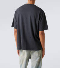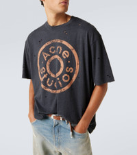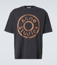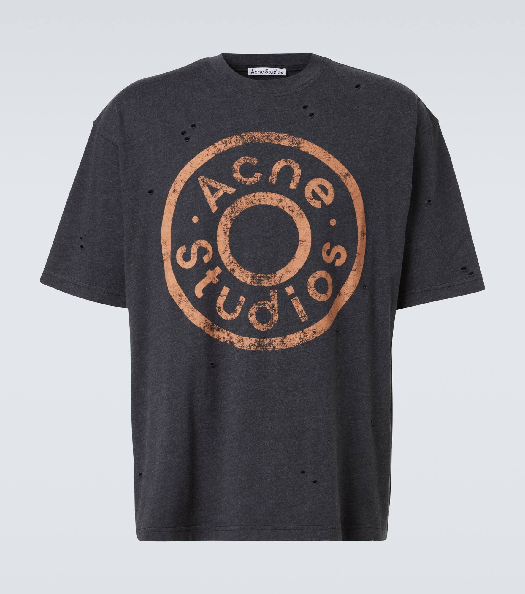 This T-shirt from Acne Studios is crafted from a cotton-blend jersey with a bold all-over distressing and the brand's logo at the front. Designed with a relaxed fit, this piece reflects the brand's Scandinavian-cool aesthetic. Product Details - Material: 75% cotton, 25% polyester - Care instructions: machine wash at 30 degrees - Made in Portugal - Designer color name: Black Melange - Item color: black, orange - Collar: crewneck - Sleeves: dropped shoulder - Item number: P01066527 Size & Fit - True to size - Dropped shoulders - Designed for a loose fit - Stretchy fabric - Falls below the hip - Height of model is 188cm-74" and wears a size L