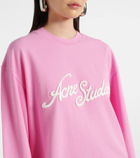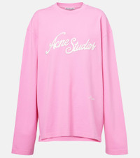 Stockholm-based Acne Studios has a firmly established cult following thanks to its Scandinavian-cool aesthetic. This T-shirt is a long-sleeved style made purely from cotton jersey and complete with the brand's logo embroidered across the front. Product Details - Material: 100% cotton - Care instructions: machine wash cold - Made in Portugal - Designer color name: Bubble Pink - Item color: pink - Item number: P01073588 Size & Fit - True to size - Dropped shoulders - Oversized - Non-stretchy fabric - Falls below the hip - The model seen in the picture is 178cm-5'10" and wearing a size XS