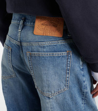 Product Details - Material: 100% cotton - Care instructions: machine wash at 30 degrees - Made in Italy - Designer color name: Mid Blue - Pockets: five pockets, cargo pockets - Closure: concealed button placket - Belt loops - Trim: 100% leather - Item number: P01024774 Size & Fit - True to size - Non-stretchy fabric - Tapered leg - Low-rise - The model seen in the picture is 178cm-5'10" and wearing a size DT 34