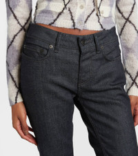 Stockholm-based Acne Studios has earned a firmly established cult following through its cool Scandinavian aesthetic. These slim fit jeans are made to a low-rise silhouette with a slightly flared hem. Product Details - Material: 62% cotton, 21% viscose, 15% polyester, 2% elastane - Care instructions: machine wash at 30 degrees - Made in Italy - Designer color name: Dark Blue - Item color: blue - Hardware color: silver - Belt loops - Pockets: five pockets - Closure: zipper fly, button fastening - Item number: P01114261 Size & Fit - Fits small to size - we recommend trying one size larger - Slightly stretchy fabric - Skinny leg - Low-rise - The model seen in the picture is 178cm-5'10" and wearing a size S