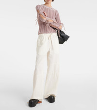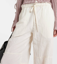 Product Details - Material: 63% cotton, 37% linen - Care instructions: dry clean - Made in Bulgaria - Designer color name: Warm White - Elasticated drawstring waist - Pockets: side slit pockets, back pockets - Item number: P00913800 Size & Fit - True to size - Elasticated waist - Adjustable at the waist - Non-stretchy fabric - Wide-leg - The model seen in the picture is 178cm-5'10" and wearing a size DT 34