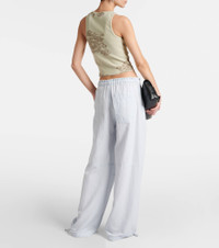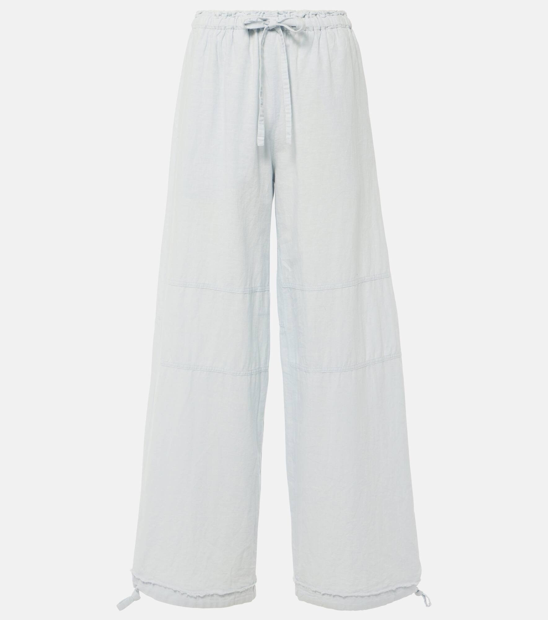 Product Details - Material: 63% cotton, 37% linen - Care instructions: dry clean - Made in Bulgaria - Designer color name: Pale Blue - Elasticated drawstring waist - Pockets: side slit pockets, back pocket - Item number: P00955365 Size & Fit - True to size - Elasticated waist - Adjustable at the waist - Adjustable hem - Non-stretchy fabric - Wide-leg - The model seen in the picture is 178cm-5'10" and wearing a size DT 34