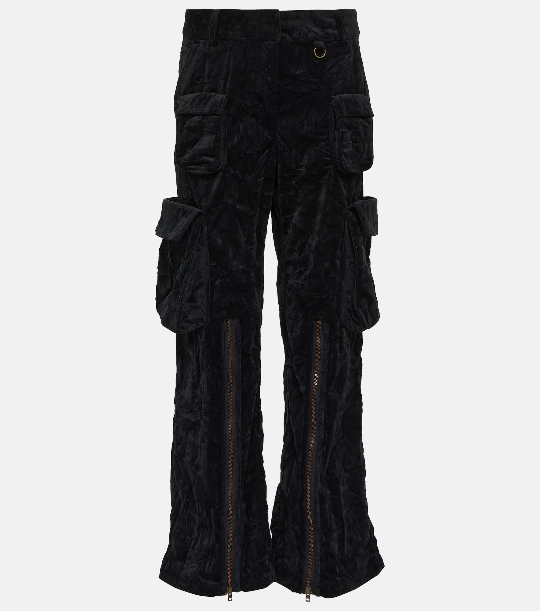 Crinkled velvet cargo trousers - Black