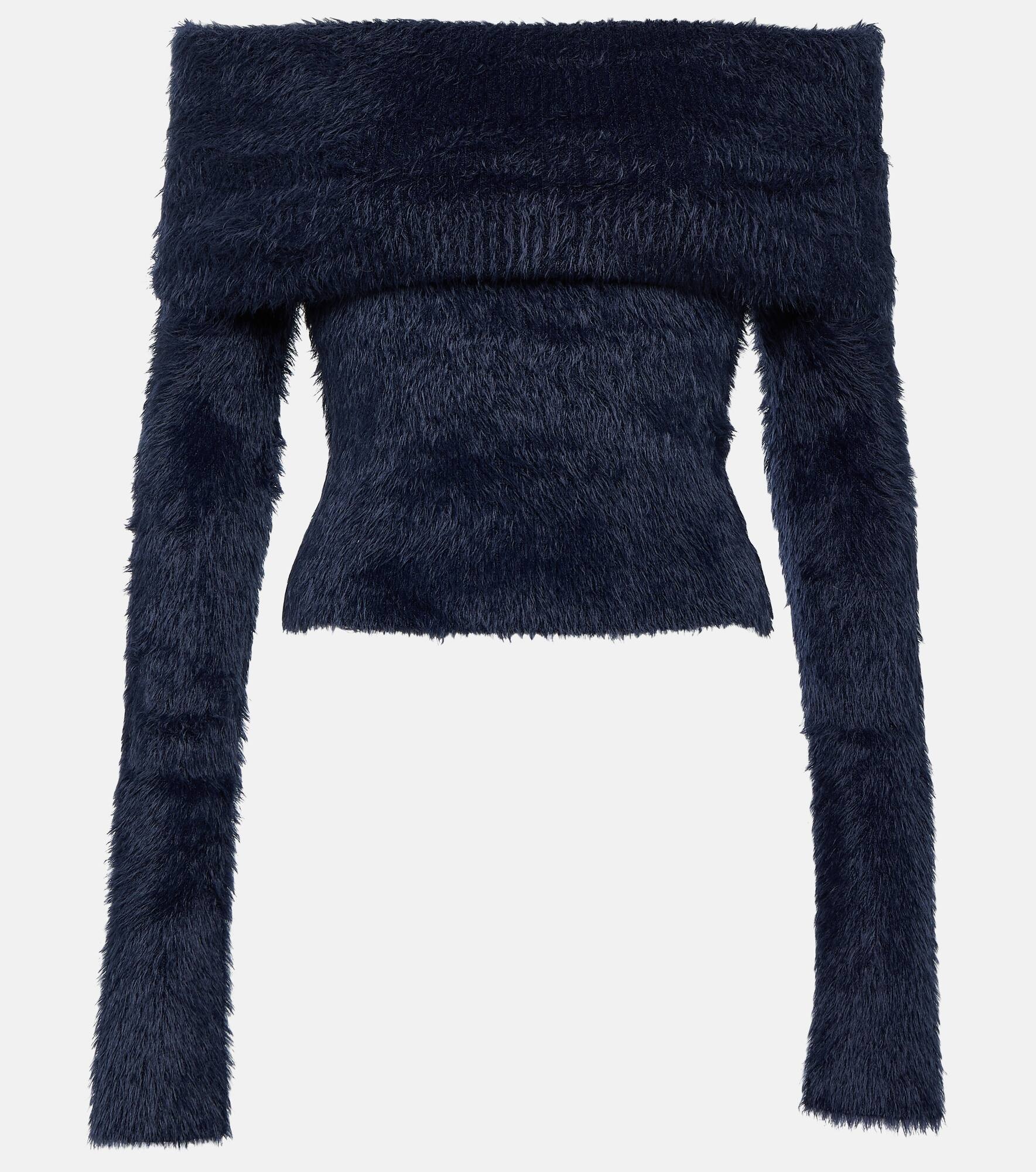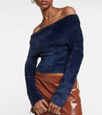 Stockholm-based Acne Studios has a firmly established cult following thanks to its Scandinavian-cool aesthetic. This sweater is defined by an off-shoulder silhouette and cropped finish. Product Details - Care instructions: hand wash - Made in China - Material: 100% polyamide - Designer color name: Dark Navy - Item number: P00843834 Size & Fit - True to size - Off-the-shoulder - Fitted - Stretchy fabric - Cropped - The model seen in the picture is 178cm-5'10" and wearing a size XS