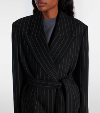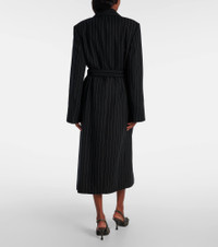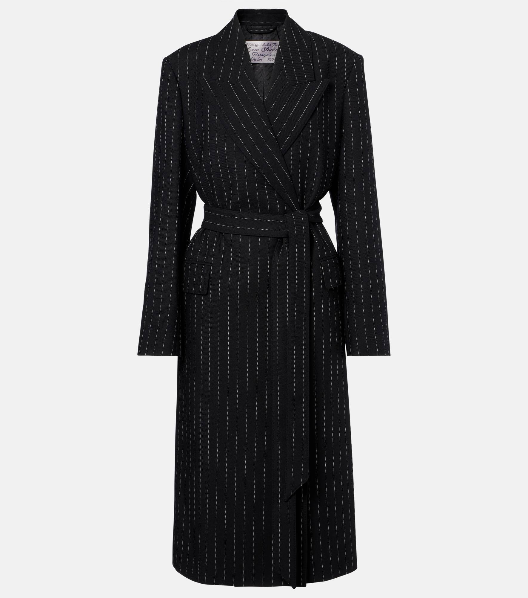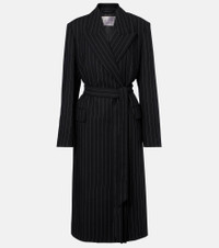 Belted pinstriped wool coat Black