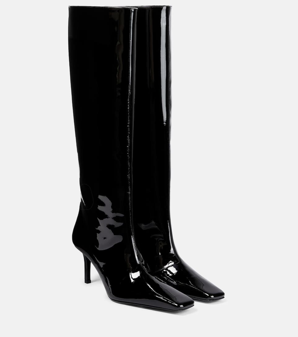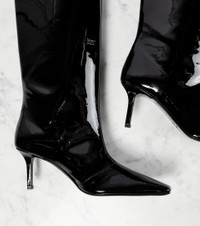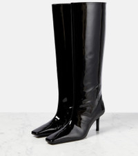 Acne Studios is synonymous with characterful, Scandinavian-inspired design. Made from glossy patent calfskin, these knee-high boots feature angled square toes, slim stilettos, and angular panels. Product Details - Lining: leather - Sole: leather insole and sole - Toe shape: square toe - Upper: leather - Comes with dust bags, Comes with a box - Designer color name: Black - Made in Italy - Item number: P00750900 Size & Fit - True to size - Half sizes please take the next size down - European sizes - 7cm-3" heel (size EU 38) - 40cm-15.5" shaft height (size EU 38) - 39cm-15.5" shaft width (size EU 38) - shaft width measured on largest part of boot