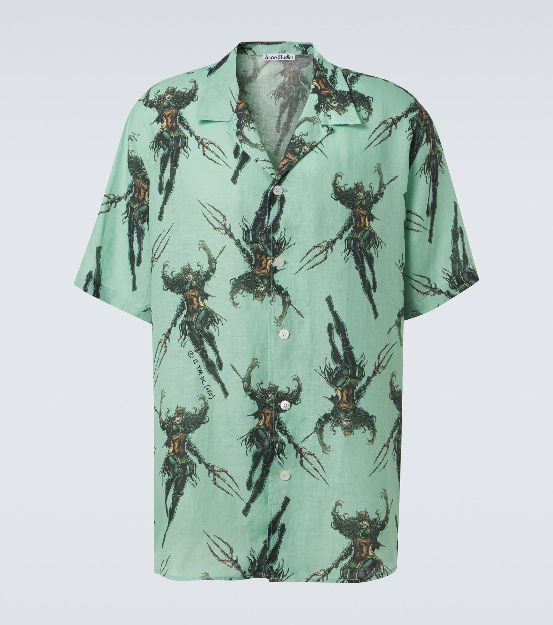 Product Details - Material: 100% linen - Care instructions: dry clean - Made in Morocco - Designer color name: Green - Closure: button-down - Collar: Cuban - Sleeves: short-sleeved - Item number: P01004611 Size & Fit - True to size - Oversized - Non-stretchy fabric - Falls below the hip - Height of model is 185cm-73" and wears a size IT 50