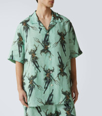 Printed linen bowling shirt